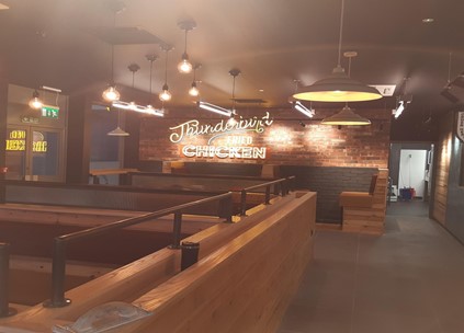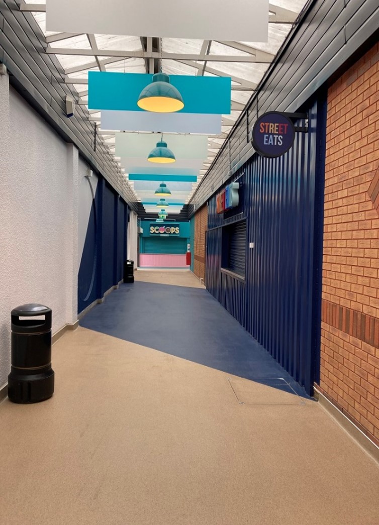 Vauxhall Holiday Park is one of the biggest Park Dean Resorts and minutes away from the golden sands and bustling seaside resort of Great Yarmouth. A brand new development and upgrade has taken place and Premier Lighting Supplies and Newman Gauge joined forces in early 2022 to transform the eating and takeaway areas in this unique fun filled V Arena. Bright Colourful Pendants lead the way to these brilliant stylish new facilities. Illuminated shop signs, spotlights and modern fashionable pendants were all incorporated into this family friendly fun zone.